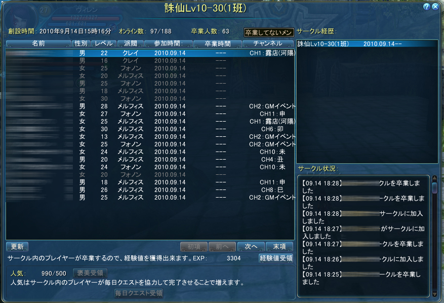 サークルっていう機能が新しくできてたんだけど、よく見る職業チャットみたいなのがあって誅仙ではレベル帯の括りチャットでした。