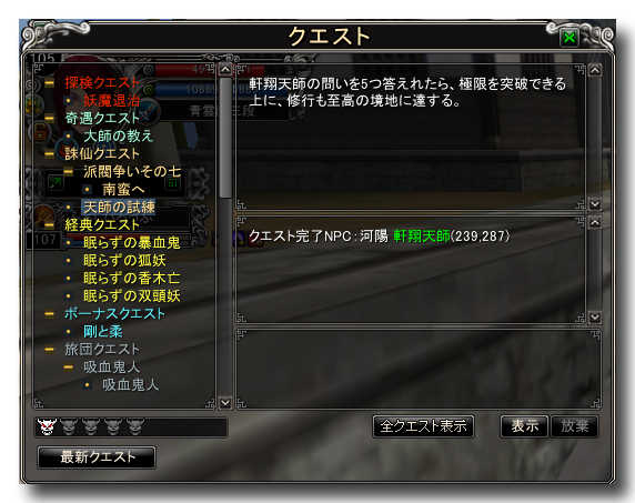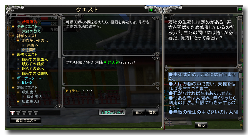 自動完了後、また河陽の軒翔天師に行けと言われます。