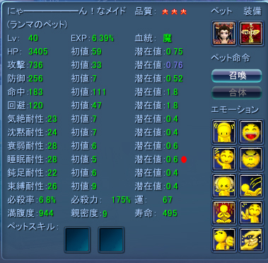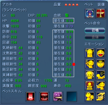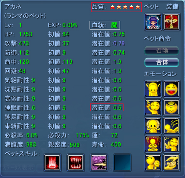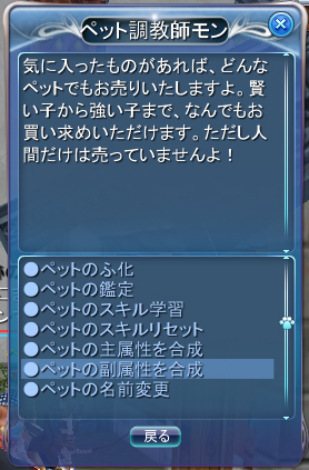 ※血統も合成して聖→魔になったので、次回の副属性の合成に用いるサブペットの血統は聖であるのを忘れずに・・・。